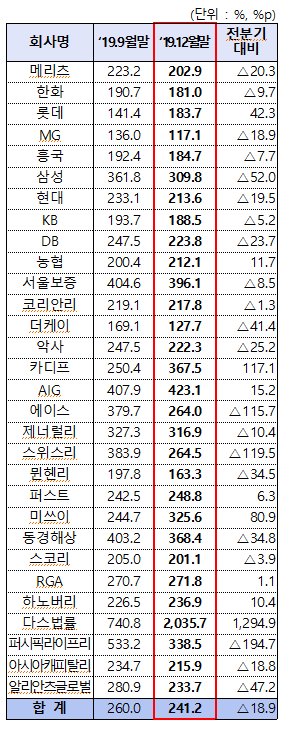 | 손해보험회사 RBC비율(지급여력비율) 추이(2016. 12. - 2019. 12.) (0) | 2020.04.24 |